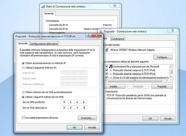 come impostare DNS ed utilizzi Windows 7 o Vista, clicca